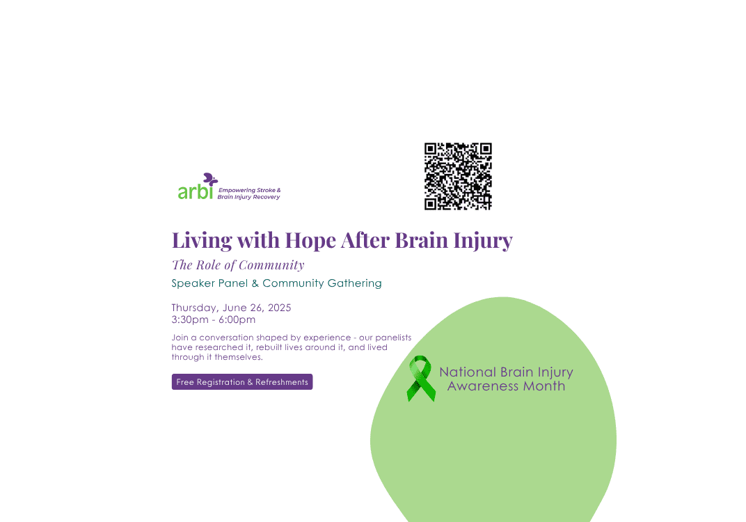 Join us for ARBI’s Living with Hope After Brain Injury – The Role of Community , Speaker Panel & Community Gathering to explore the ongoing recovery experience, and why it’s not linear.